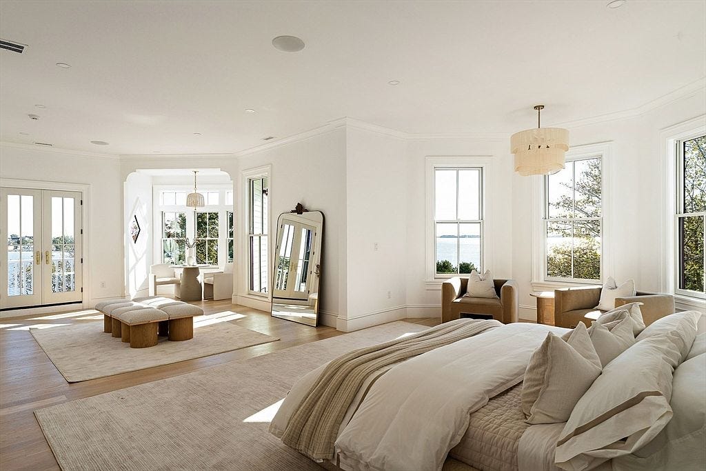 The major treat of this home is that it underwent a multi-million-dollar restoration project in 2023, after going on the auction block in 2020 in a state of complete disrepair. The developer who purchased the property worked with the Nahant Historical Society to document the process, which you can check out here. You can also check out some before-and-after photos here. The trick is that the interior designer had virtually everything, including the custom millwork, painted white.