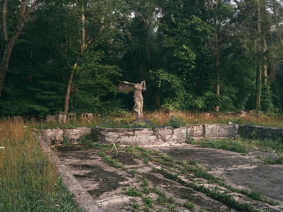From the main bedrooms, you get a view across Filstonās 106 acres of rolling hills and woodlands, a formal garden, a reflecting pond with lily pads, and this creepy, derelict pond with a headless statue that is definitely not haunted.